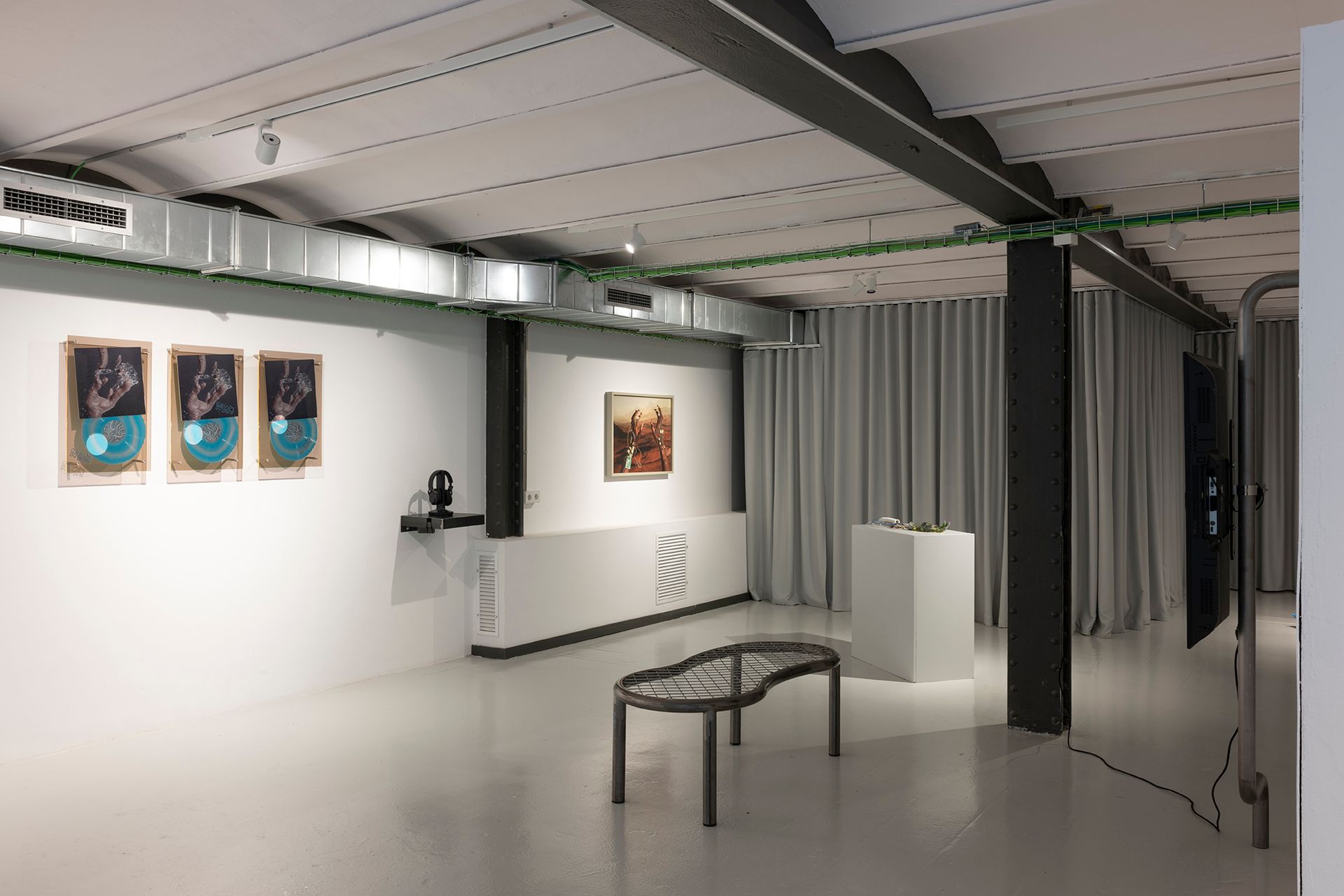 El vinilo resultante incluye dos composiciones. La cara A presenta la pista originalmente concebida como tema para Annelida — ahora escuchada en un tocadiscos dentro de la exposición. La cara B experimenta transformaciones recursivas, con sonidos procesados mediante software generativo hasta 32 veces, revelando artefactos digitales y lo que Dousselaere denomina “pareidolia auditiva artificial”: la ilusión del lenguaje emergiendo de la abstracción.