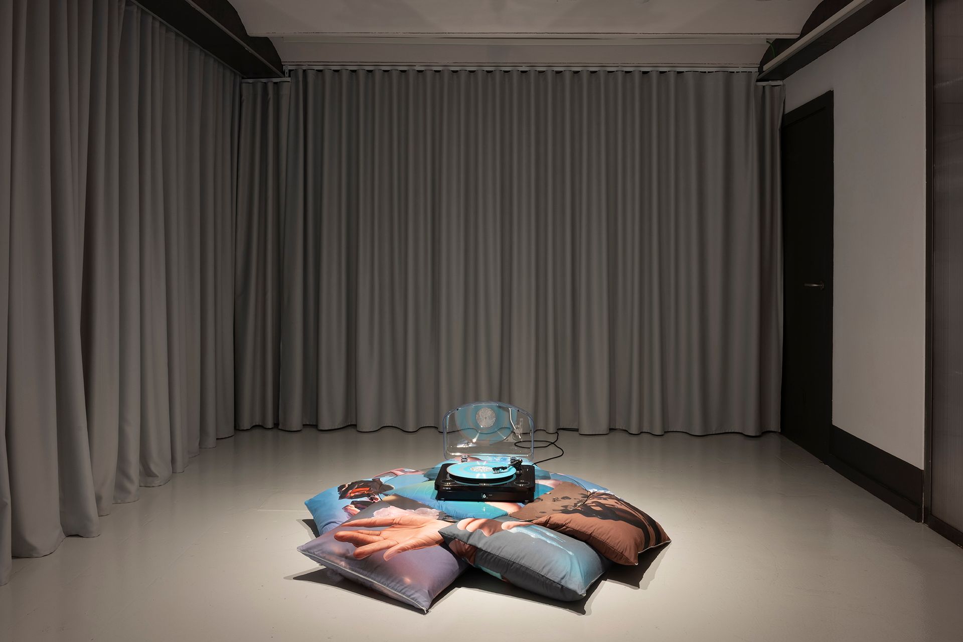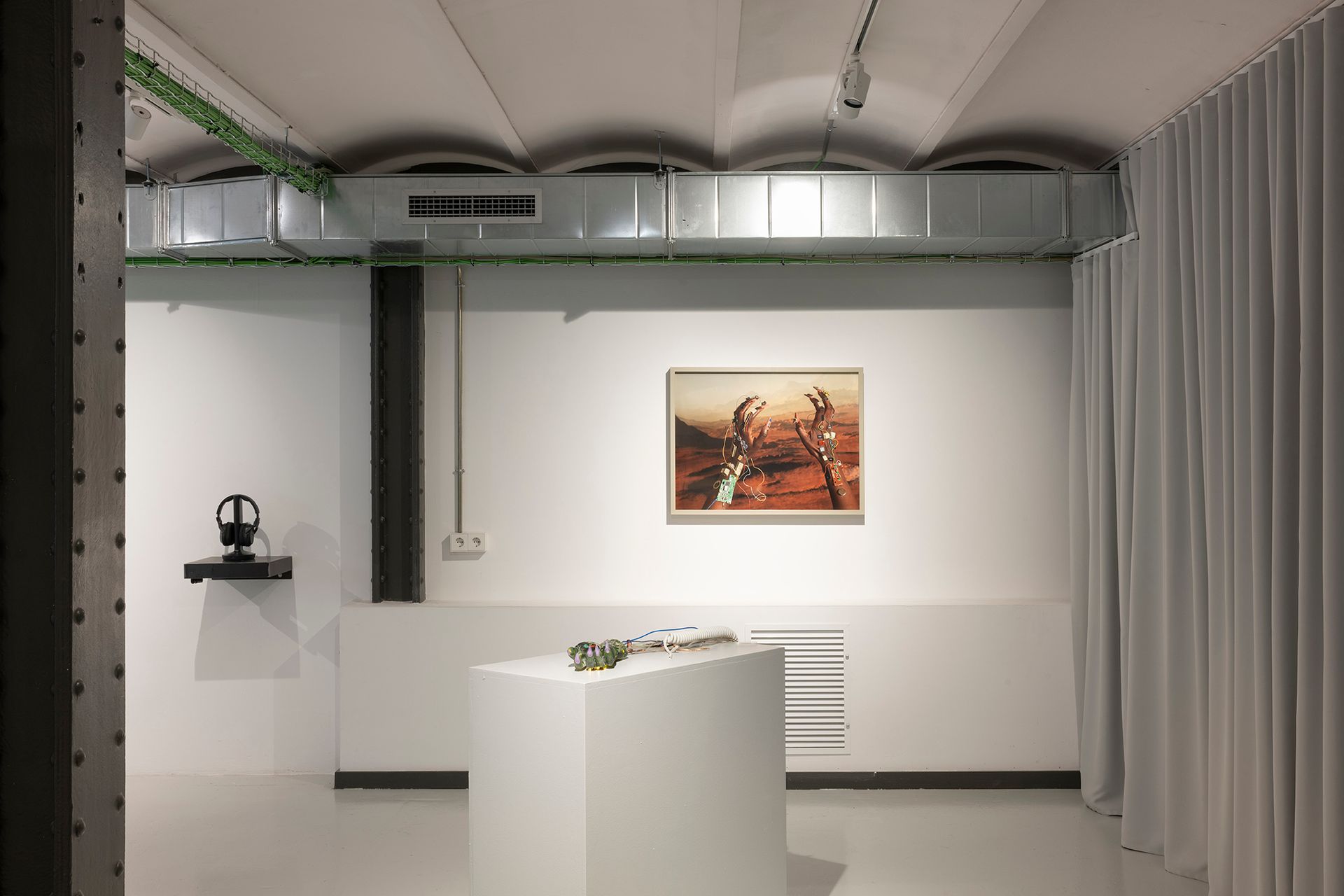 El vinilo resultante incluye dos composiciones. La cara A presenta la pista originalmente concebida como tema para Annelida — ahora escuchada en un tocadiscos dentro de la exposición. La cara B experimenta transformaciones recursivas, con sonidos procesados mediante software generativo hasta 32 veces, revelando artefactos digitales y lo que Dousselaere denomina “pareidolia auditiva artificial”: la ilusión del lenguaje emergiendo de la abstracción.