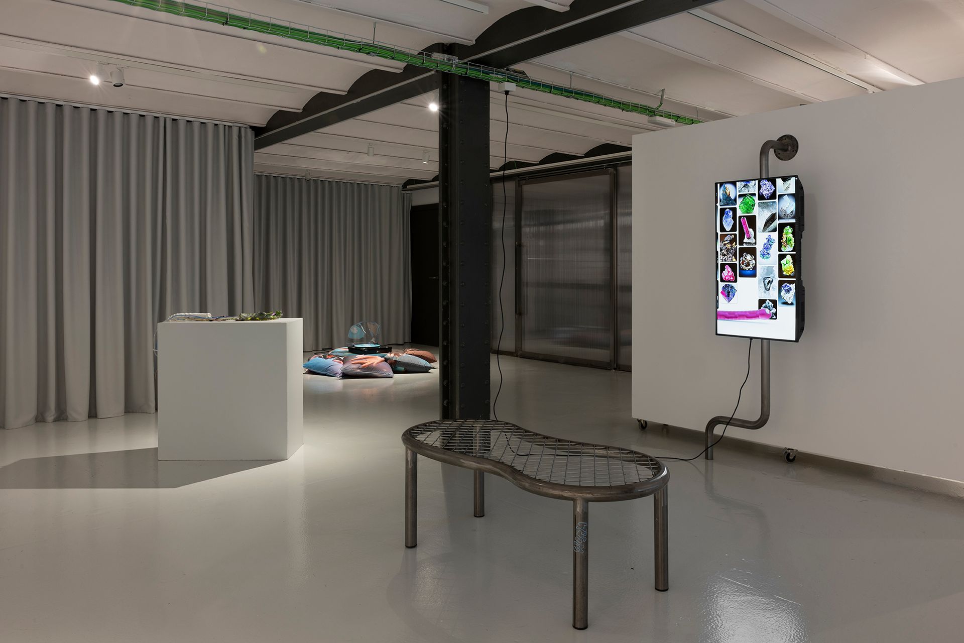 Animación con sonido estéreo (4"44'), soporte y banco de acero galvanizado Ed. 1/1 + PA